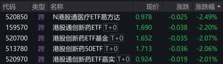 受盘面影响,多只港股创新药相关ETF跌超2%。